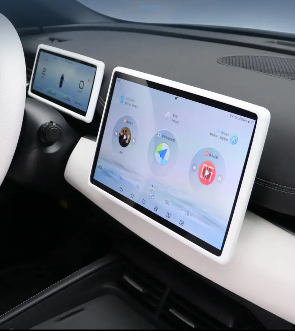 This silicone screen edge knee protector is designed to enhance driving comfort by reducing knee contact with the screen edge. It fits seamlessly around 15.6-inch central control displays, maintaining full functionality while adding subtle protection.