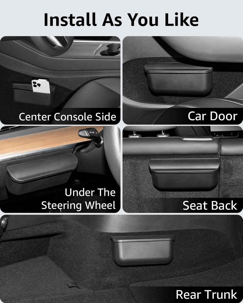 Equipped with a hook on the back for the Model Y center console storage box, it can be easily attached to the original car's flocking.